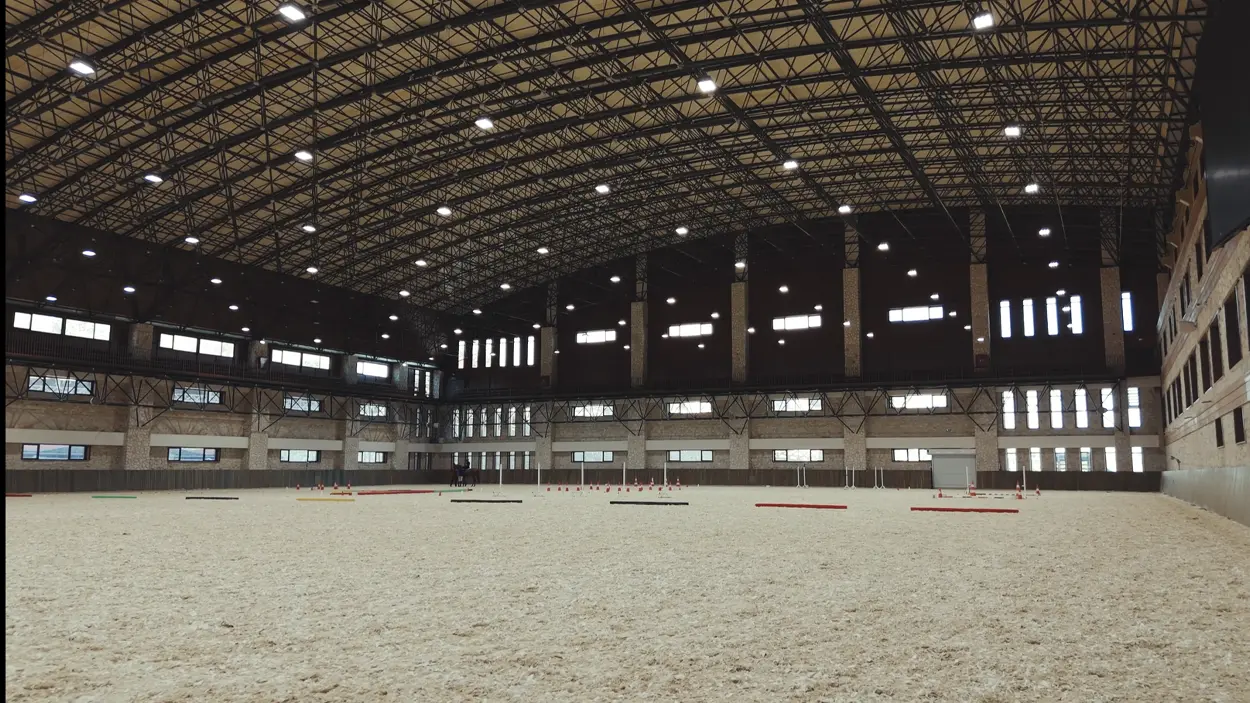 Modern stable facilities built to international standards, fully ventilated, and compliant with veterinary supervision.